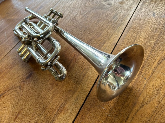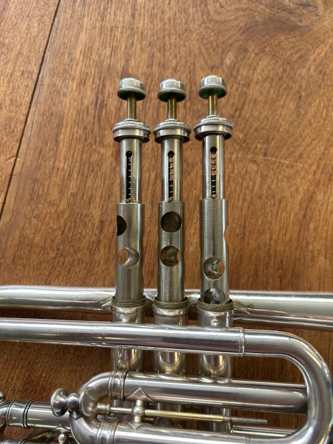 Te koop: een prachtige Bes-cornet van York, model Perfec-Tone uit 1917. Het instrument verkeert in zeer mooie staat gezien de leeftijd. De ventielen zijn professioneel opnieuw gecoat en functioneren perfect – soepel en betrouwbaar. De cornet is volledig nagekeken, onderhouden en direct speelklaar.