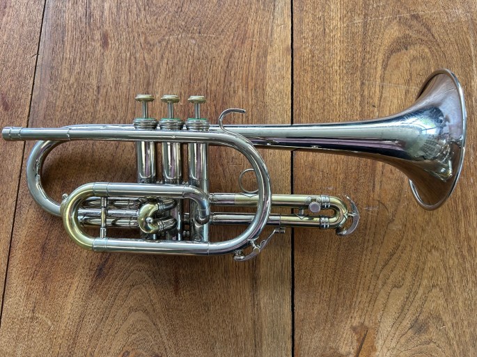 This vintage instrument is in excellent condition and has been carefully maintained. The valves have been professionally recoated and are in perfect working order, ensuring smooth and reliable playability. The cornet has been fully inspected and is ready to play immediately.