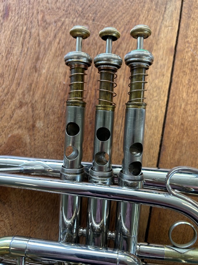 Dit vintage instrument verkeert in zeer mooie staat en is altijd goed onderhouden. De ventielen zijn professioneel opnieuw gecoat en verkeren in perfecte conditie, wat zorgt voor een soepele en betrouwbare speelervaring. De cornet is volledig nagekeken en direct speelklaar.