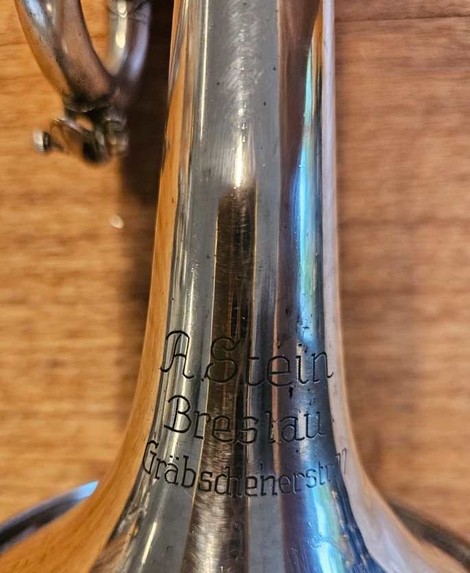Beautiful Trumpet in Bb with switch valve to A made by A. Stein from Breslau, Poland.