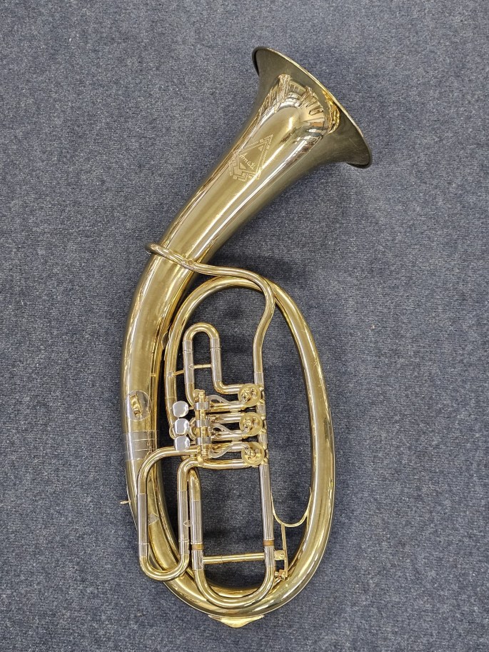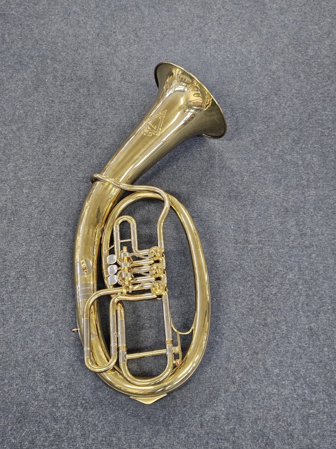 A well-crafted oval baritone in Bb, made by Amati in Kraslice (Czech Republic). This instrument has been thoroughly inspected and is in good condition, offering a warm and round tone.