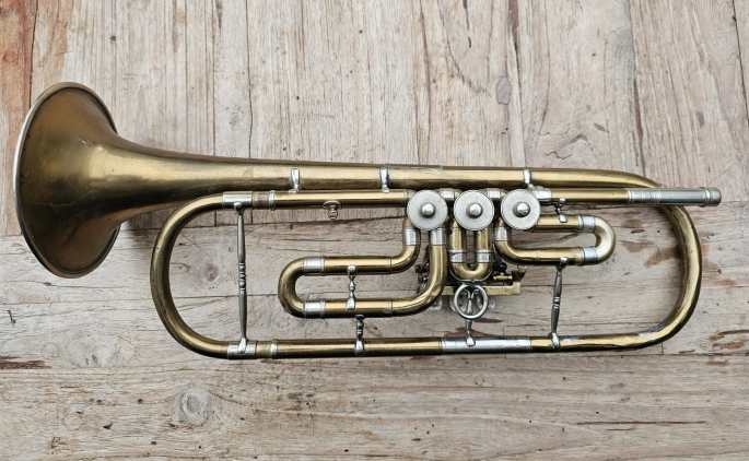 Mooie Bb trompet, gemaakt in Duitsland door een anonieme maker.