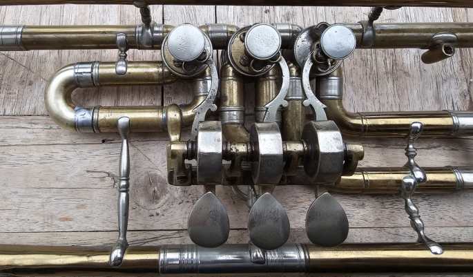 Schöne B-Trompete, hergestellt in Deutschland von einem anonymen Erbauer.