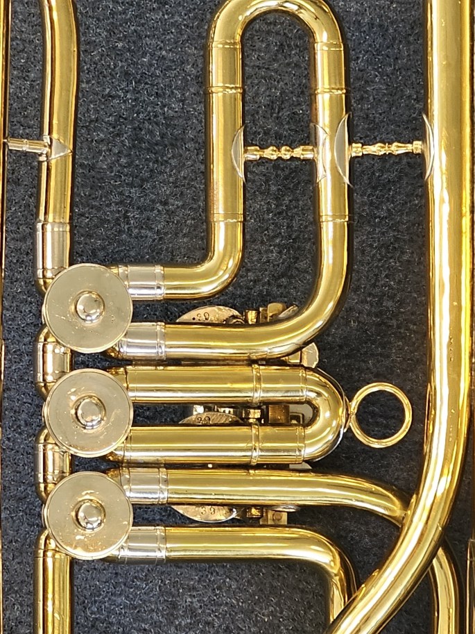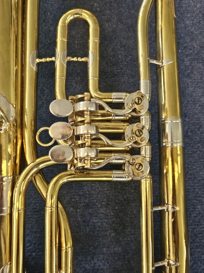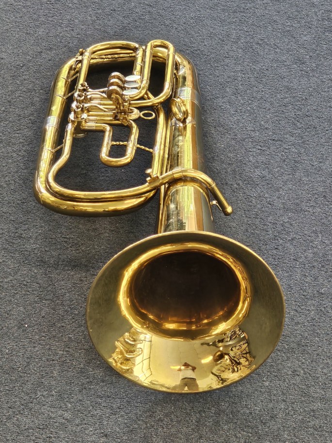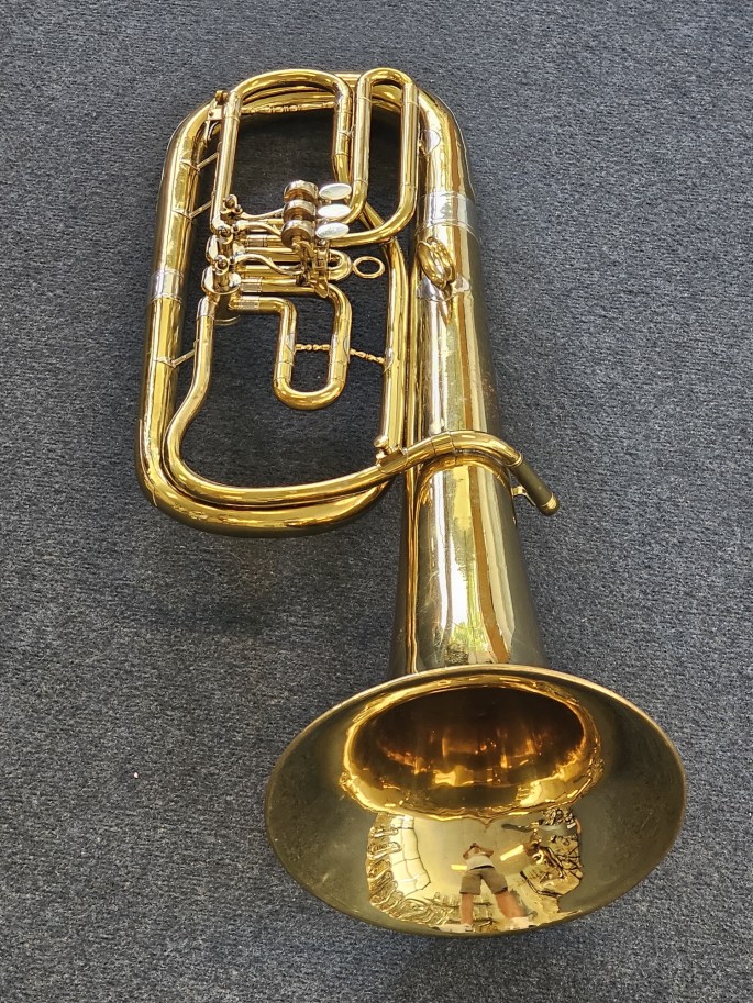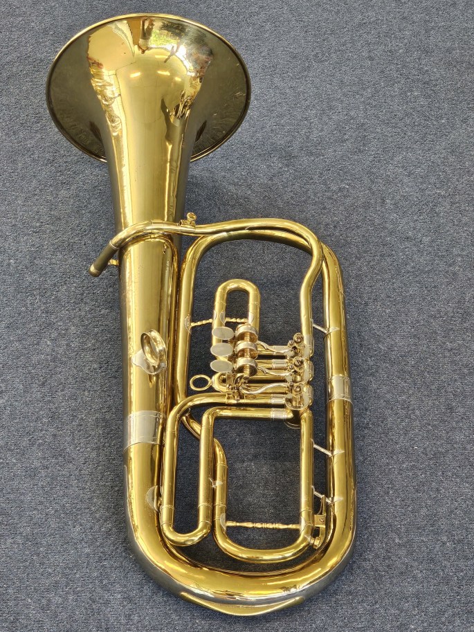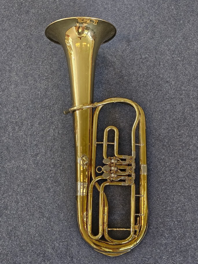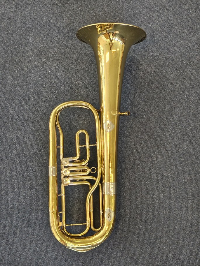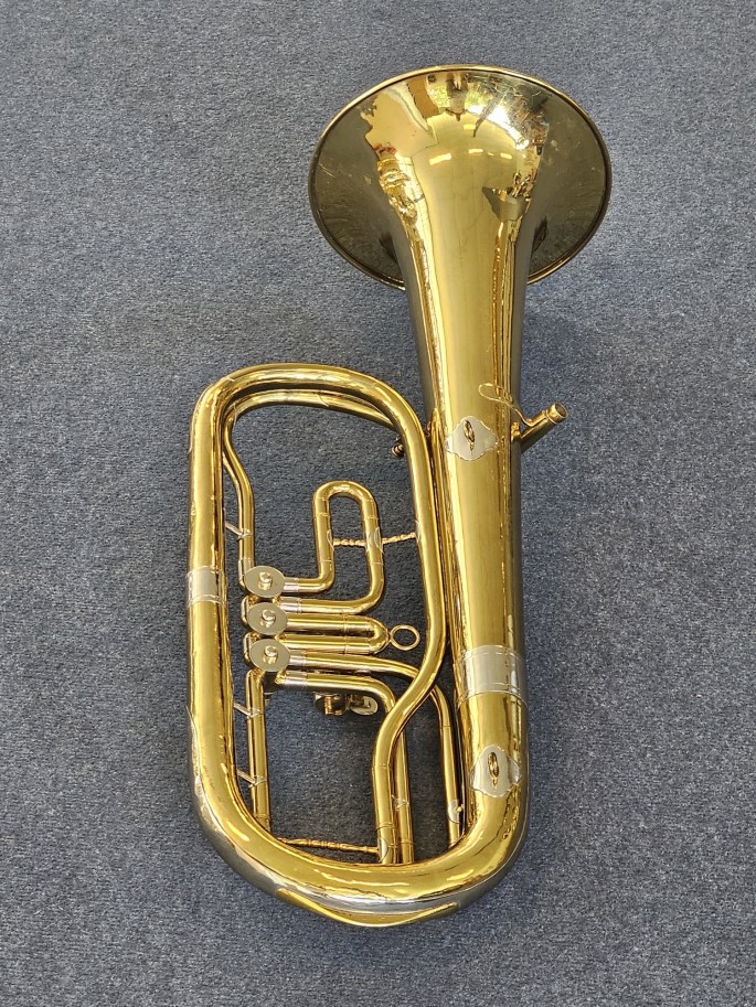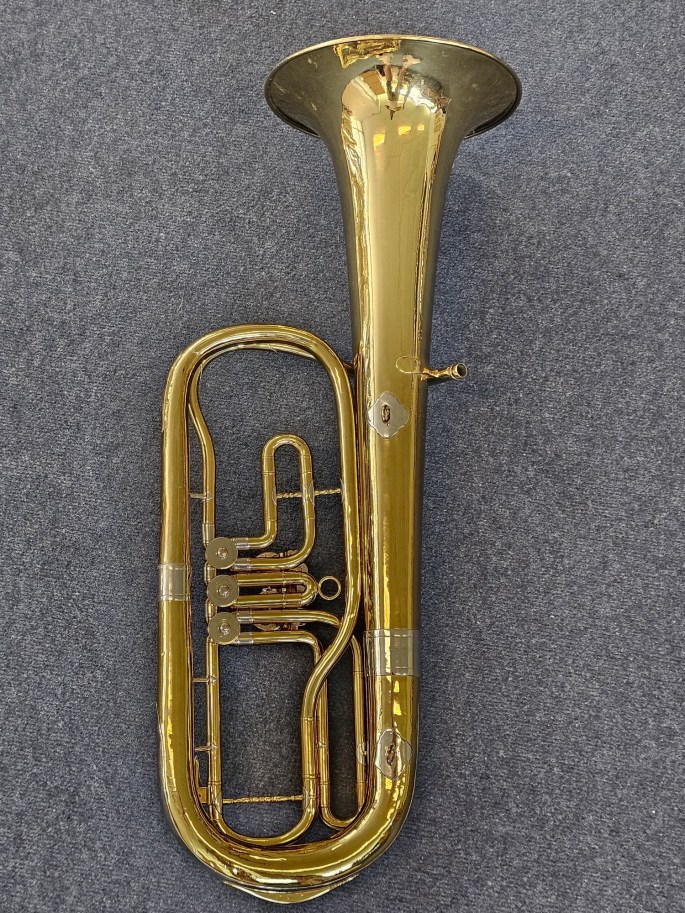 A well-built Bb baritone, made by an unknown German builder. This instrument has been thoroughly inspected and is in good condition, offering a warm and full-bodied tone.