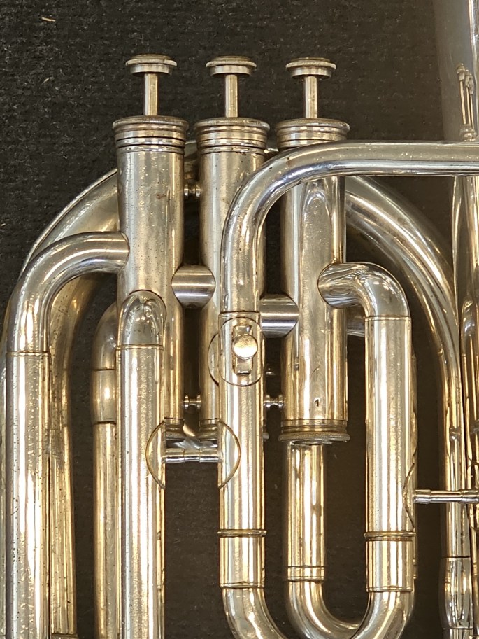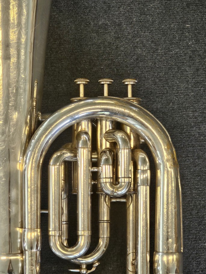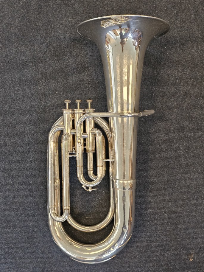 A beautifully crafted Bb euphonium made by Antoine Courtois, a renowned French maker known for precision and warm sound. This instrument has been thoroughly inspected and is in good condition.