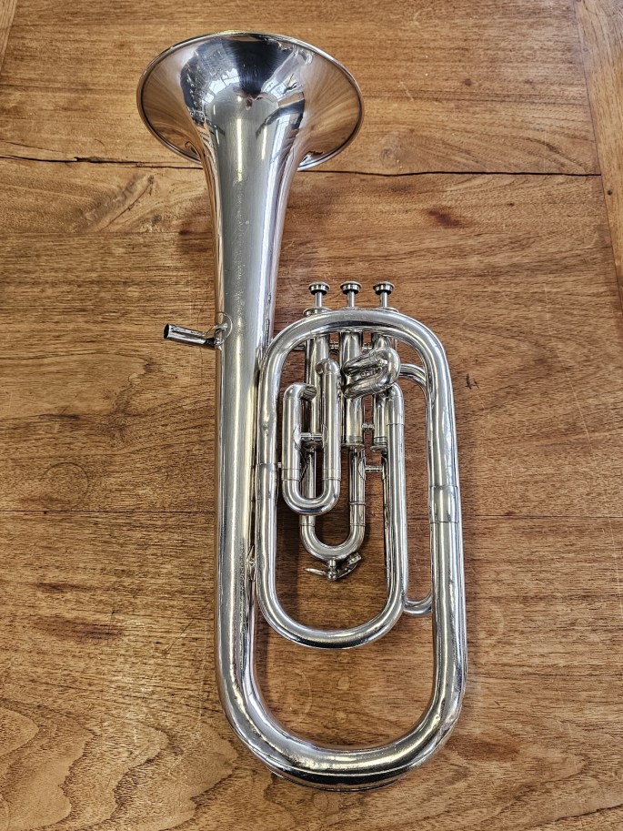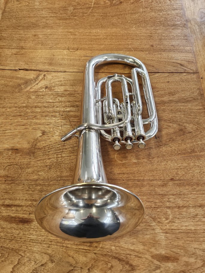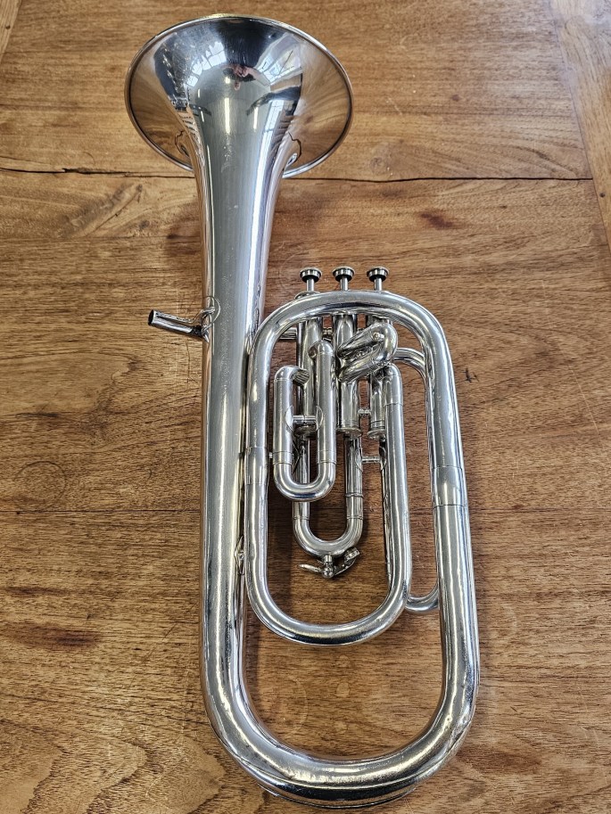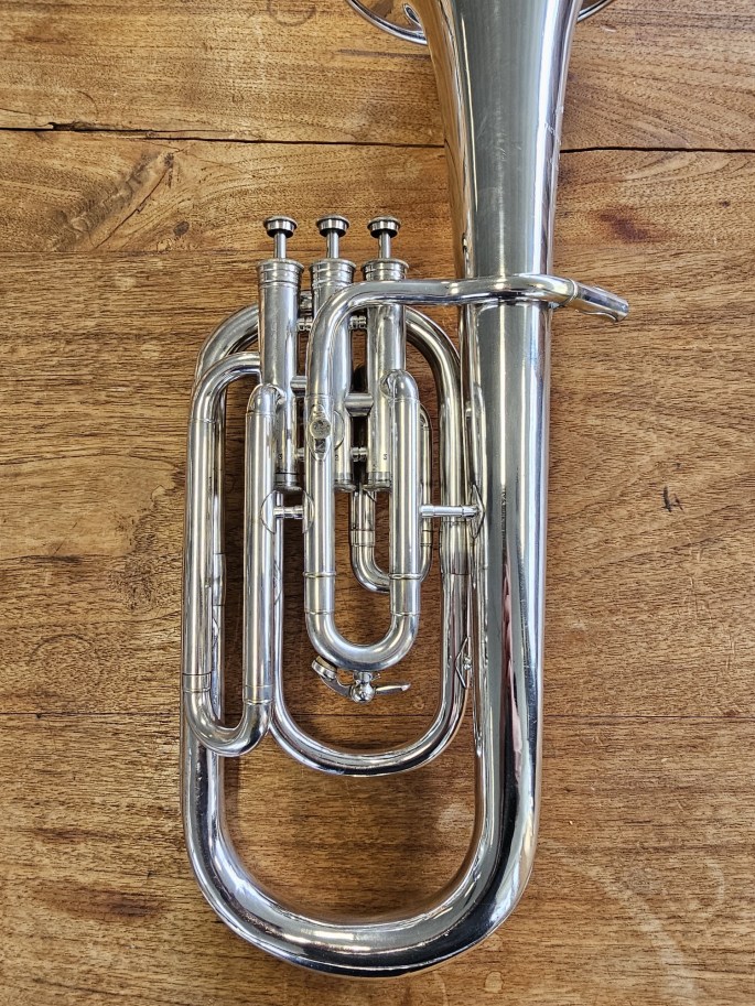 Een mooi gebouwde Es-althoorn van Antoine Courtois, bekend om zijn Franse vakmanschap en elegante klank. Het instrument is volledig nagekeken en speelklaar.