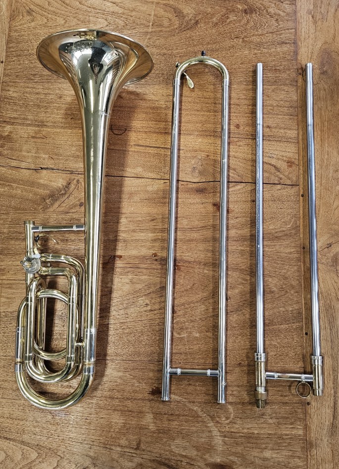 A compact and versatile tenor trombone with F attachment, model Prelude 250, made by Antoine Courtois. This instrument has been fully inspected and is ready to play.