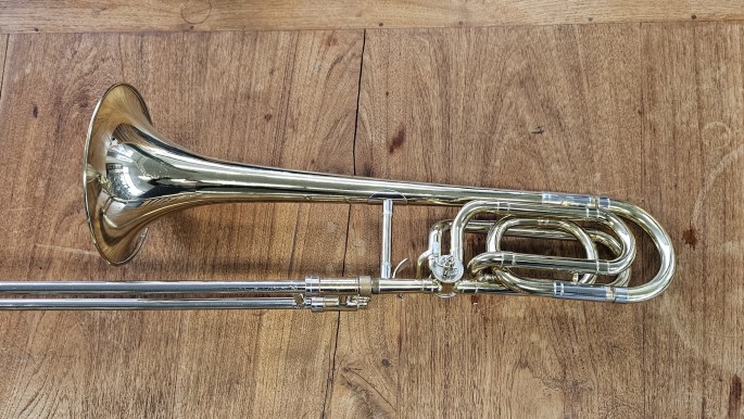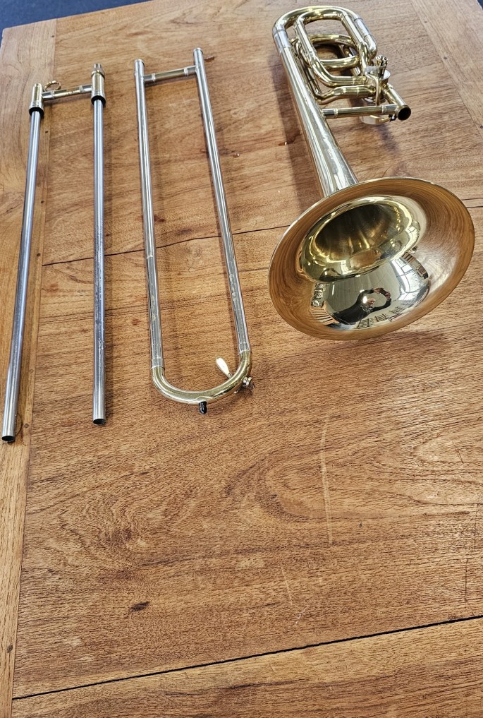 Een compacte en veelzijdige tenortrombone met kwartventiel, model Prelude 250, gebouwd door Antoine Courtois. Het instrument is volledig nagekeken en speelklaar.
