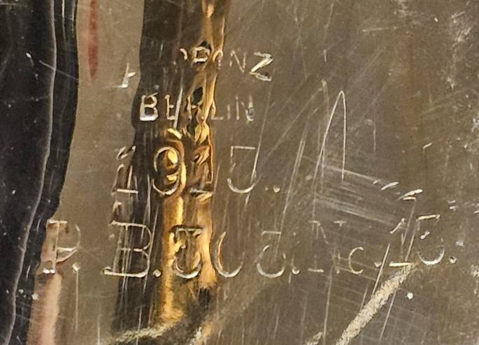This horn was overhauled in the past with new lacquer. The original Eb tuning slide was with the instrument and we made a fitting F slide for it too.