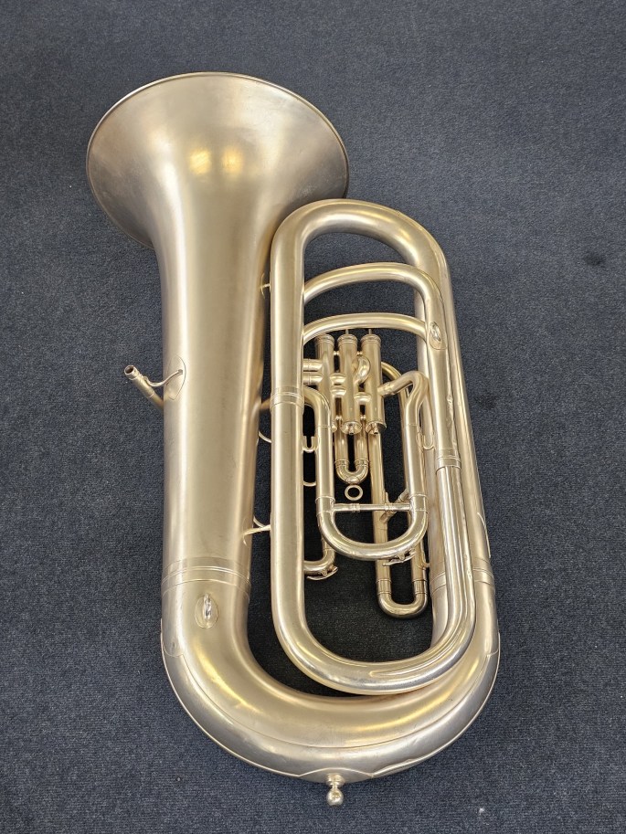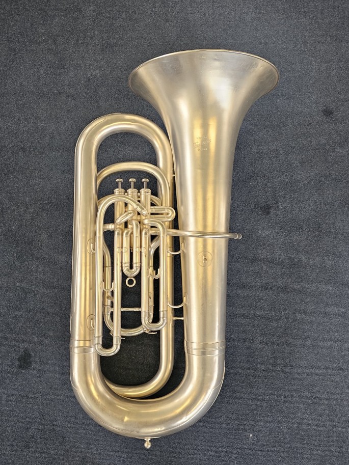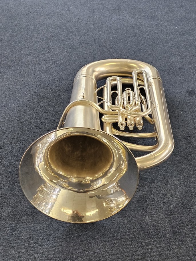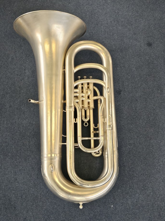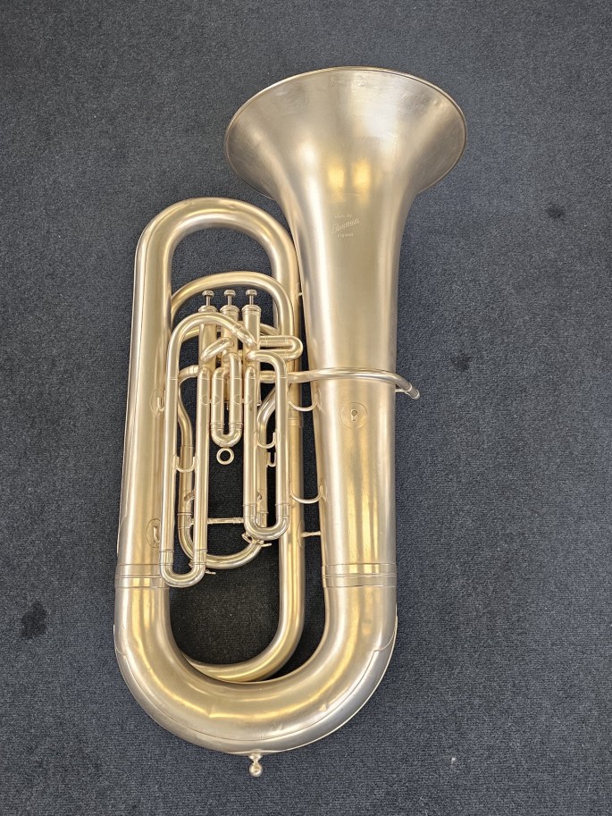 A high-quality Besson BBb Tuba, featuring a 3-valve compensating system. This classic British brass band instrument is known for its warm, characteristic sound and excellent intonation. The instrument has been fully inspected and is ready to play.