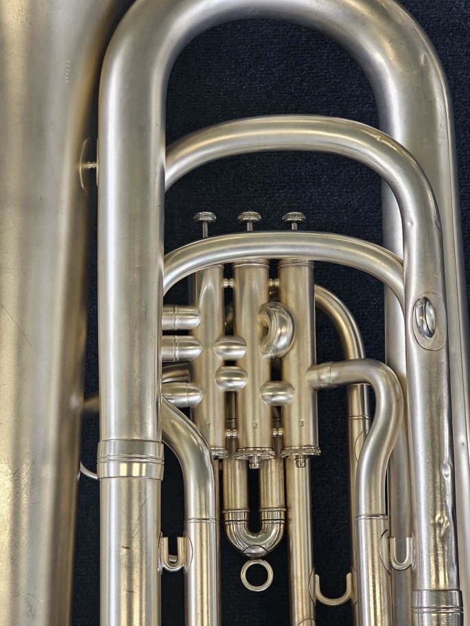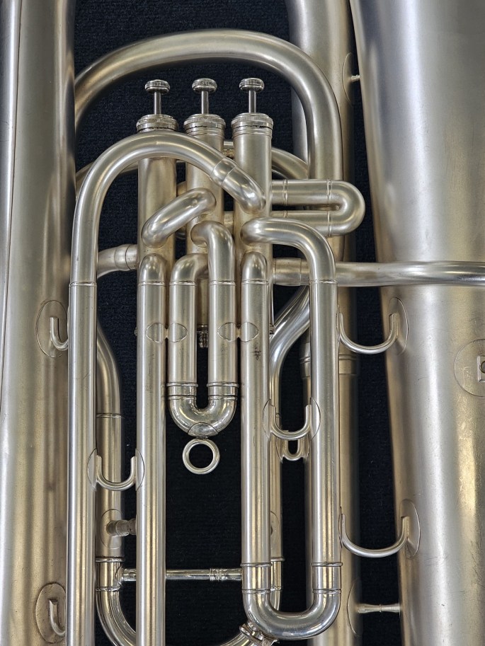 Eine hochwertige Besson B Tuba mit 3-ventiligem Kompensationssystem. Dieses klassische britische Brassband-Instrument ist bekannt für seinen warmen, charakteristischen Klang und seine sehr gute Intonation. Das Instrument wurde vollständig überprüft und ist spielbereit.