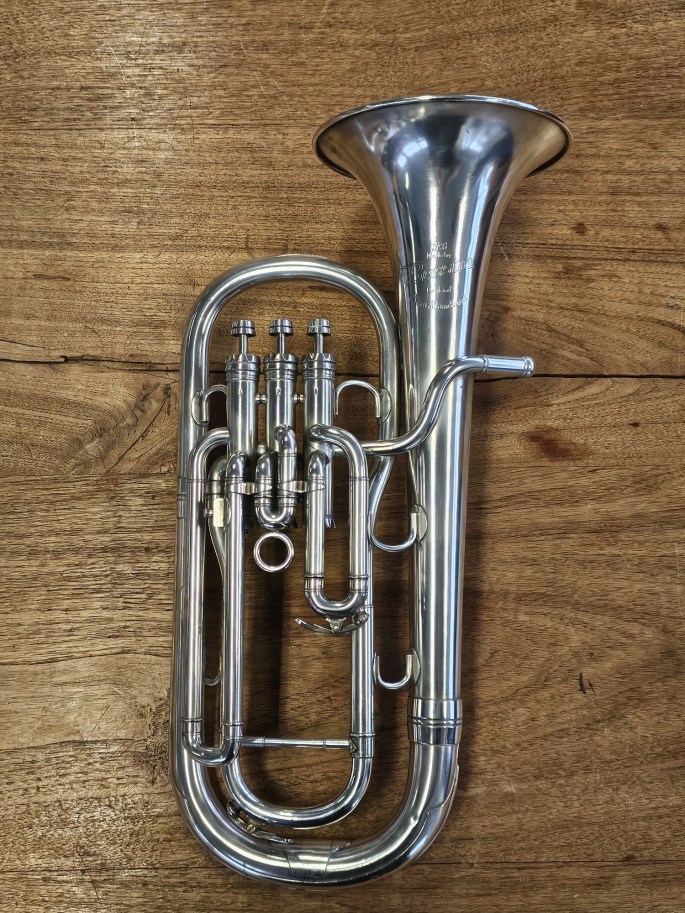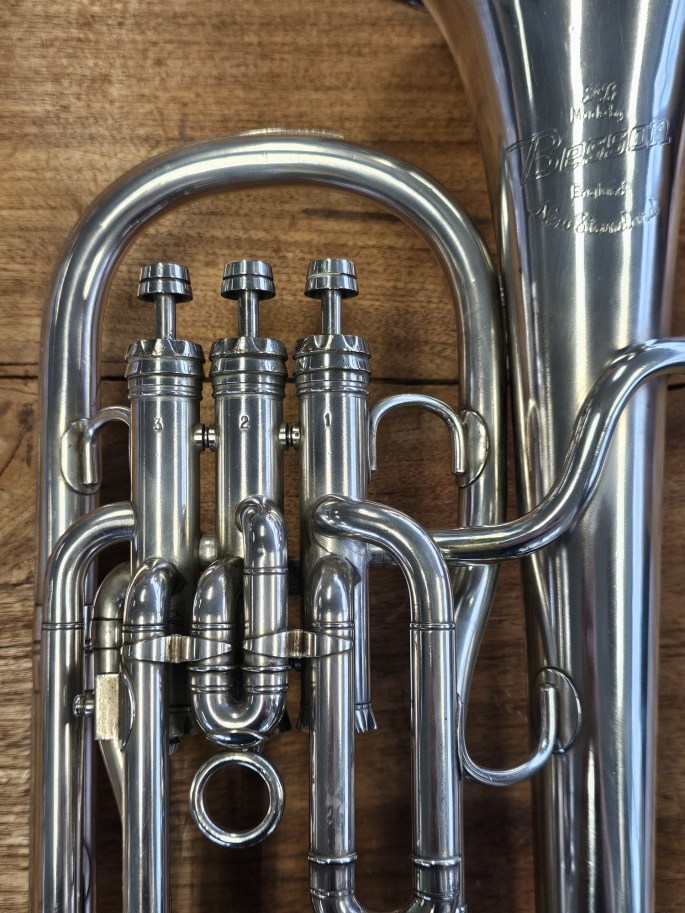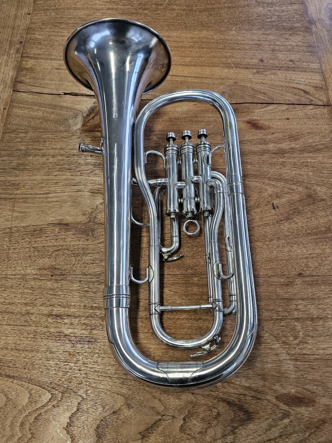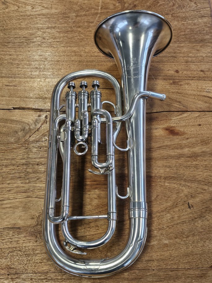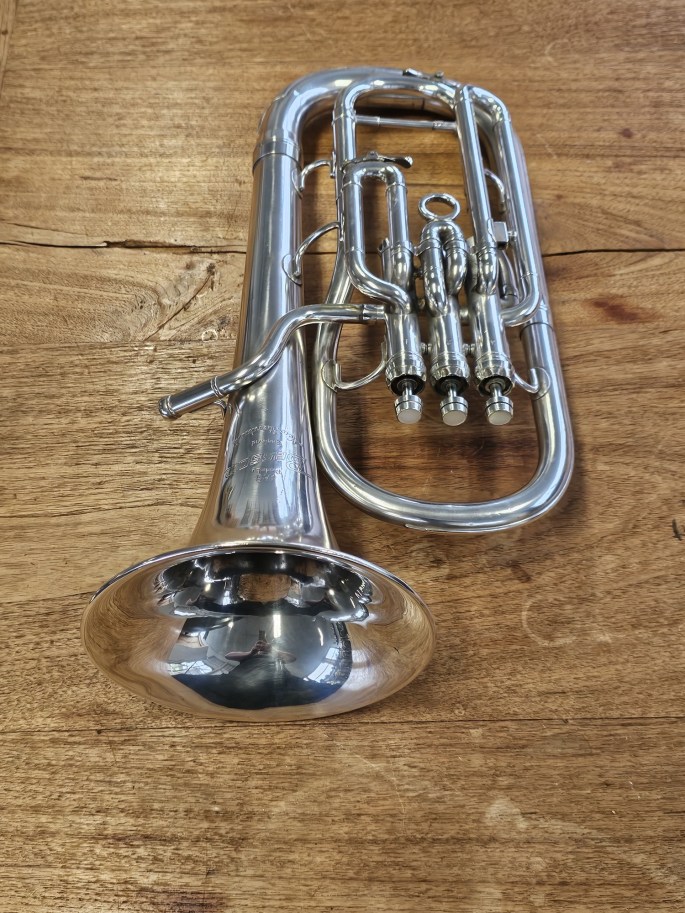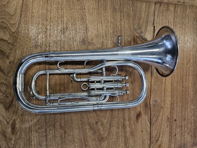 Een mooie Es-althoorn, model New Standard, gemaakt door Besson, een fabrikant met een lange traditie in hoogwaardige koperblaasinstrumenten. Het instrument is volledig nagekeken en speelklaar.