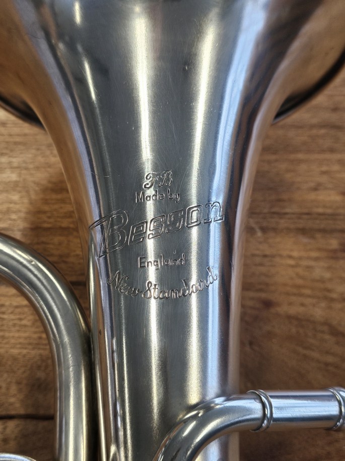 Ein hochwertiges Es-Althorn, Modell New Standard, gefertigt von Besson, einem Hersteller mit langer Tradition im Bau von Blechblasinstrumenten. Das Instrument wurde komplett überprüft und ist spielbereit.