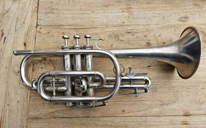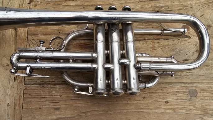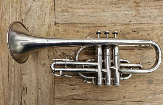Deze cornet is in goede staat. Alle kleppen en schuiven bewegen gemakkelijk en de compressie is goed.