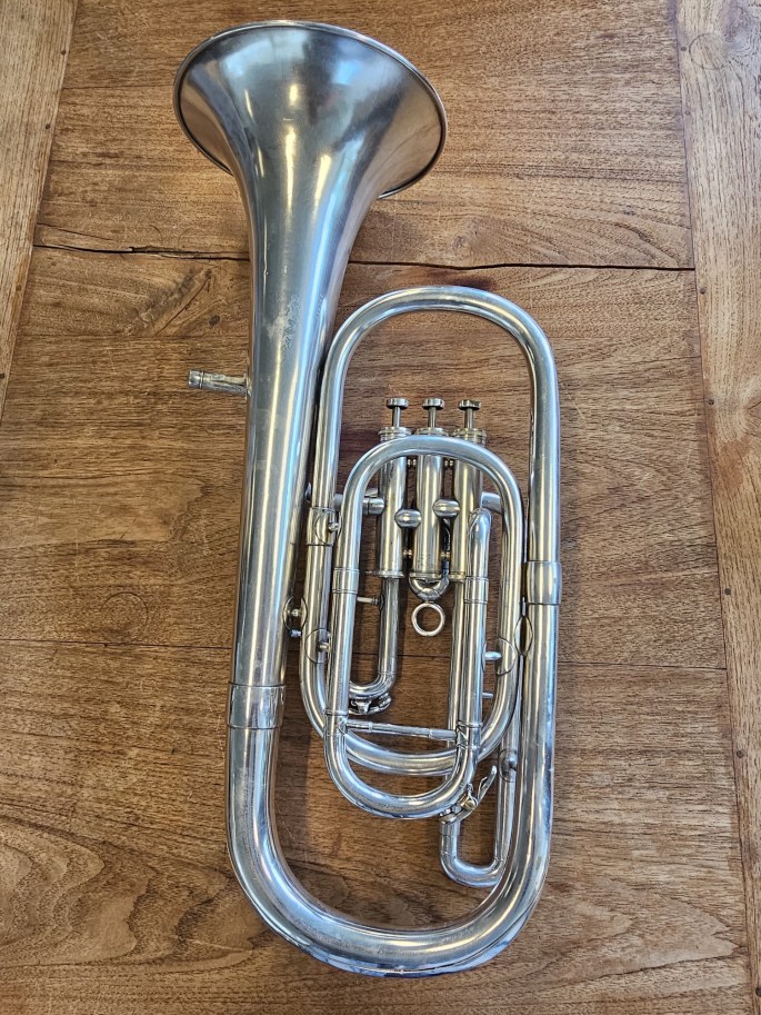 This Bb baritone, Westminster model by Besson, is known for its reliable build and warm, singing tone. The instrument has been thoroughly inspected and is in good condition.