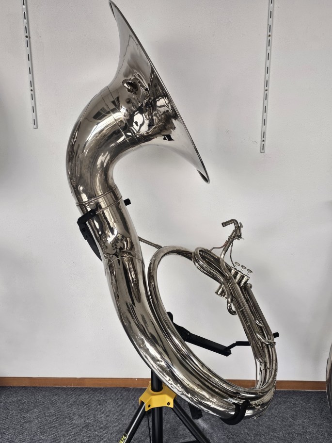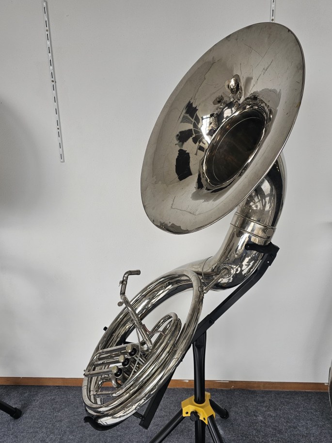 De sousafoon is volledig nagekeken, onderhouden en direct speelklaar. Alle onderdelen functioneren naar behoren, waardoor hij geschikt is voor zowel repetities als optredens.