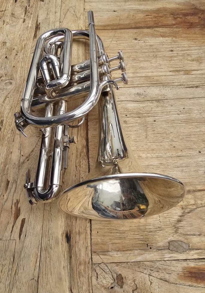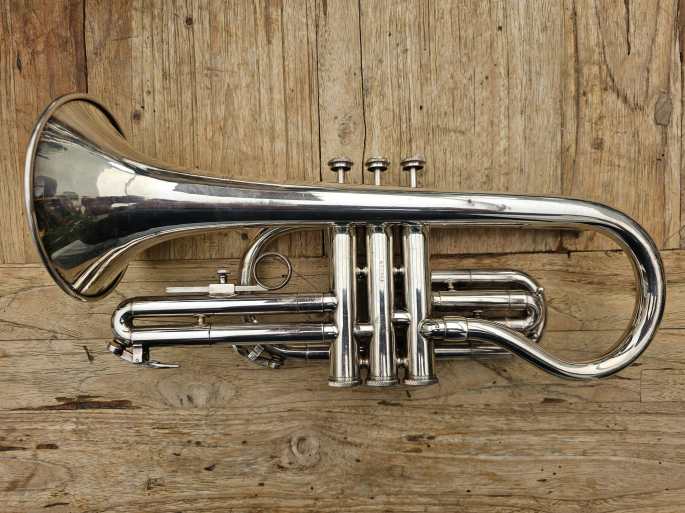 Deze cornet is in goede staat. Alle kleppen en schuiven bewegen gemakkelijk en de compressie is goed.