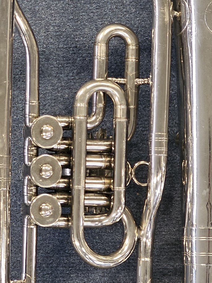 A high-quality Bb upright baritone, made by Böhm & Meinl Symphonic. This instrument has been fully inspected and is in good condition, offering a warm and pleasant sound.