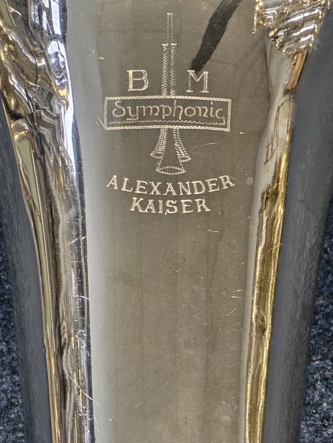 Ein hochwertiges B-Bariton/Tenorhorn in gerader Bauform, gefertigt von Böhm & Meinl Symphonic. Dieses Instrument wurde vollständig überprüft und befindet sich in gutem Zustand, mit einem warmen und angenehmen Klang.