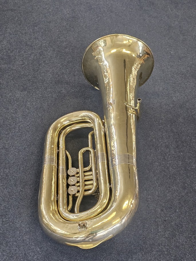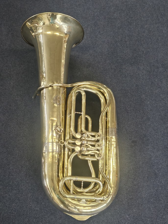 Een mooie 4/4 Bes bastuba, gebouwd door Bohland & Fuchs, een bekende Boheemse koperinstrumentenbouwer uit die tijd. Dit instrument is destijds besteld bij Bohland & Fuchs en geleverd via muziekwinkel Poyda uit Barmen.