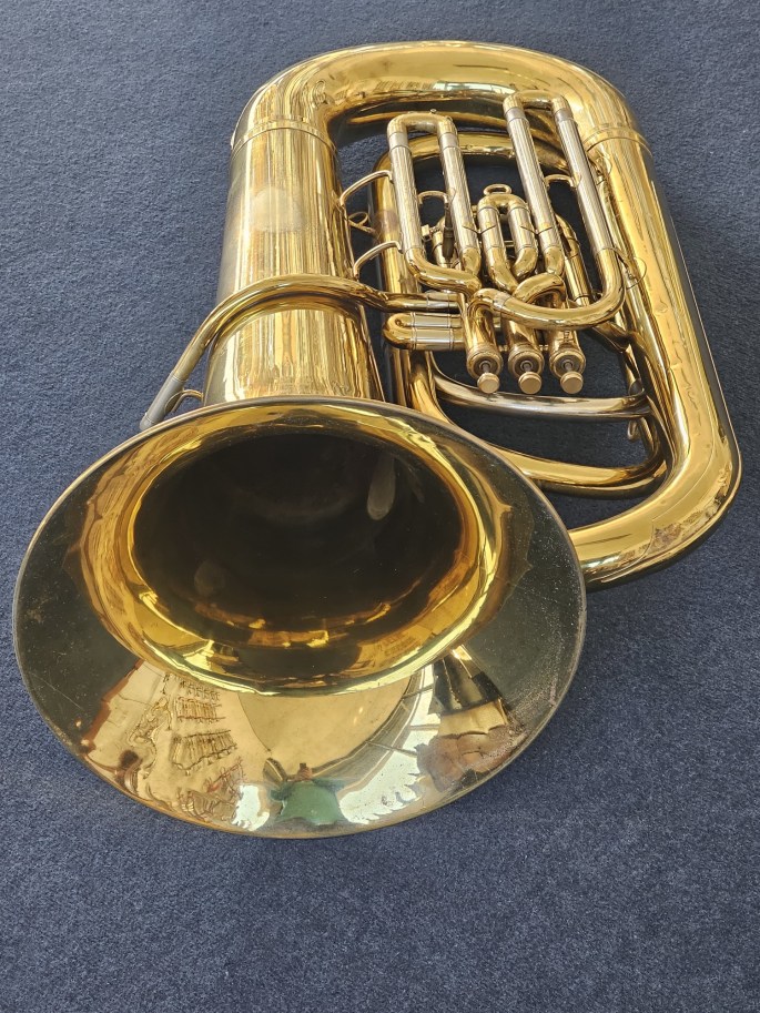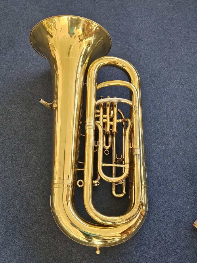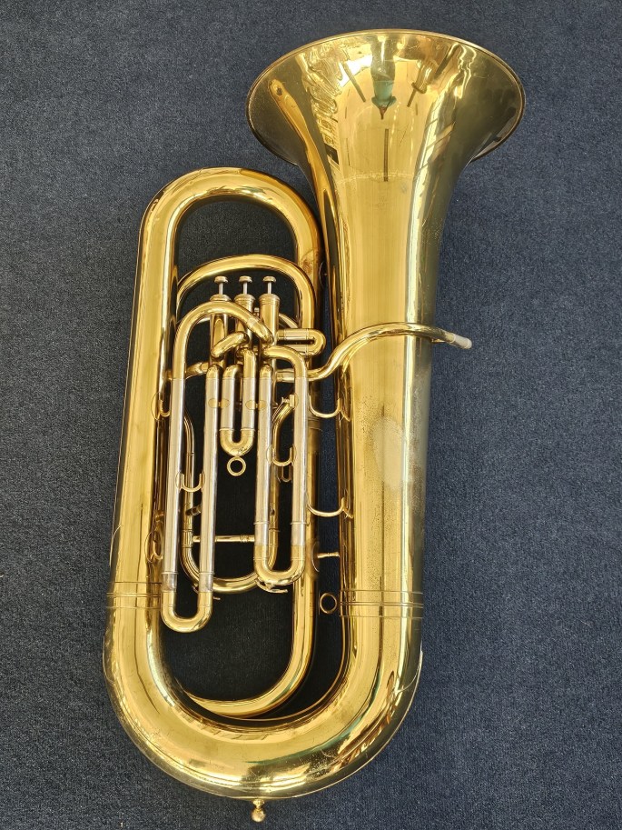A high-quality Boosey & Hawkes Imperial BBb Tuba, featuring a 3-valve compensating system. This classic British brass band instrument is known for its warm, characteristic sound and excellent intonation. The instrument has been fully inspected and is ready to play.