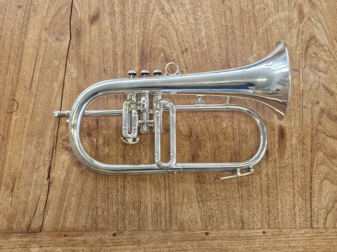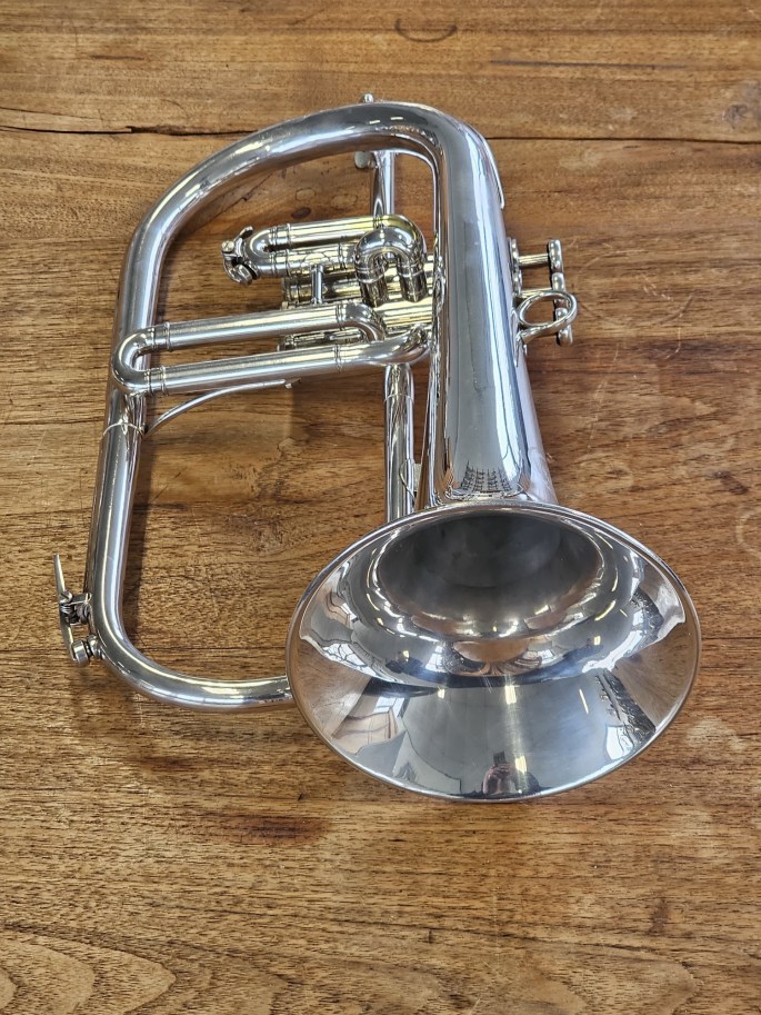 This awesome flugelhorn is in good condition. Has some traces of use and repairs in the past, but still makes a good impression.