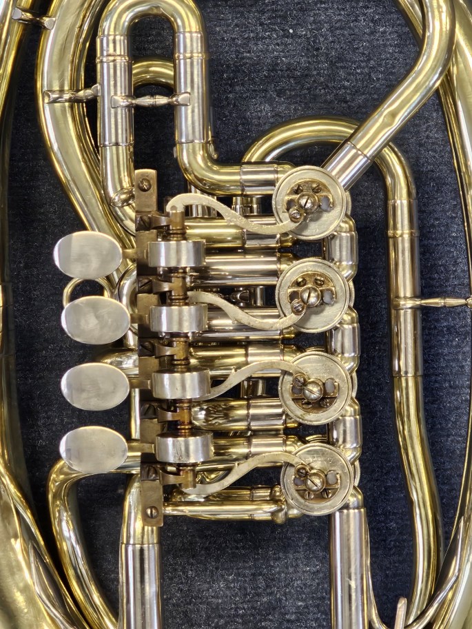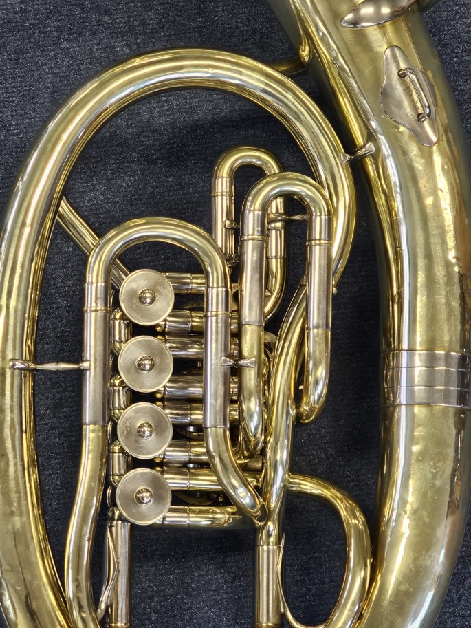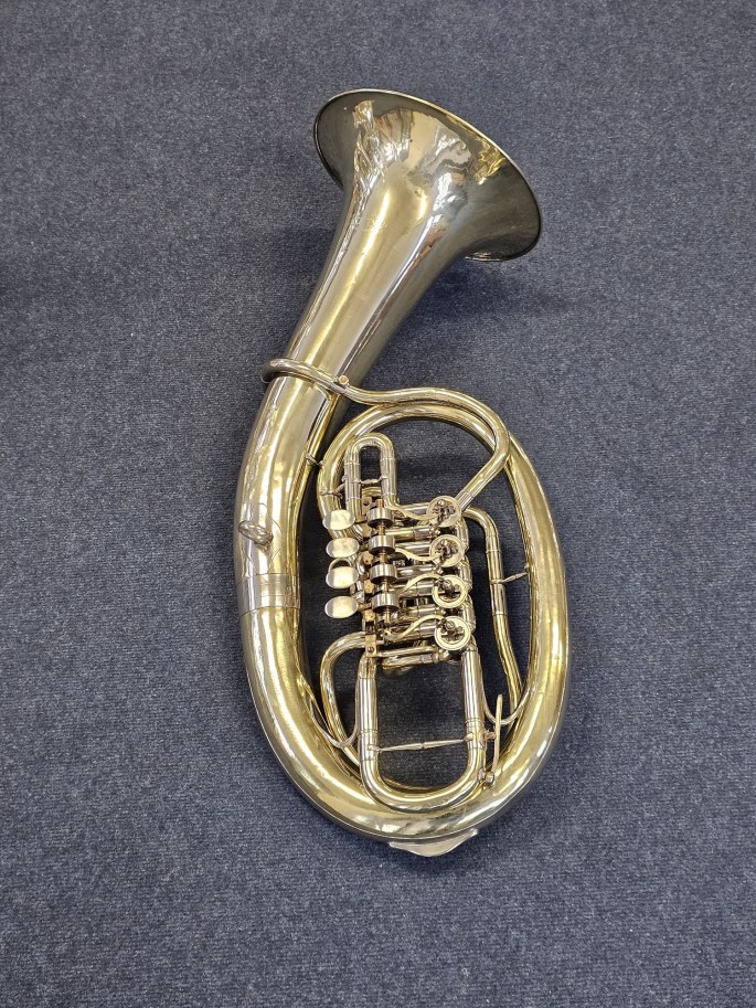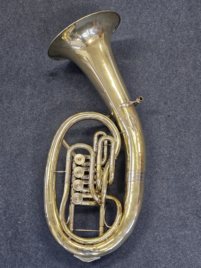 A well-built Bb oval baritone, manufactured by B&S and sold by Instrumentenbau Klein in Koblenz. This instrument has been fully inspected and is ready to play.