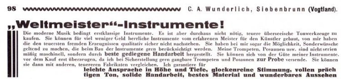 This is a very nice C.A Wunderlich Siebenbrunn Vogtland Jazz trombone made around 1930.