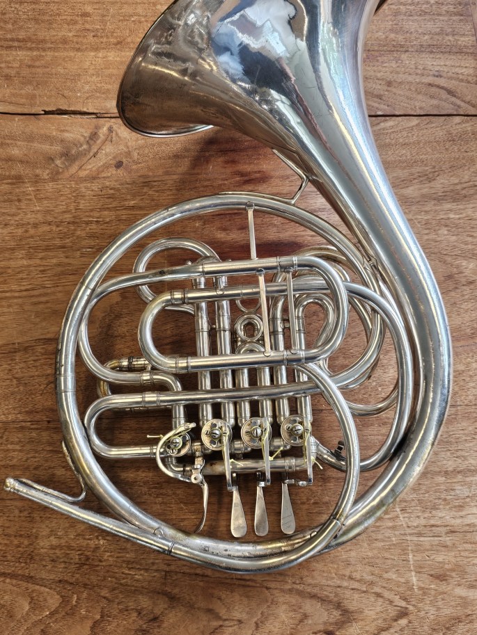 Ein bekanntes und geschätztes Doppelhorn, Modell 6D, gefertigt von C.G. Conn Elkhart. Dieses Instrument wurde komplett überprüft und ist in gutem Zustand, mit einem wunderschönen, warmen Klang.
