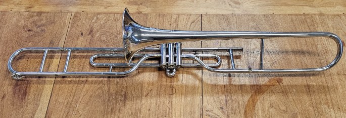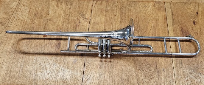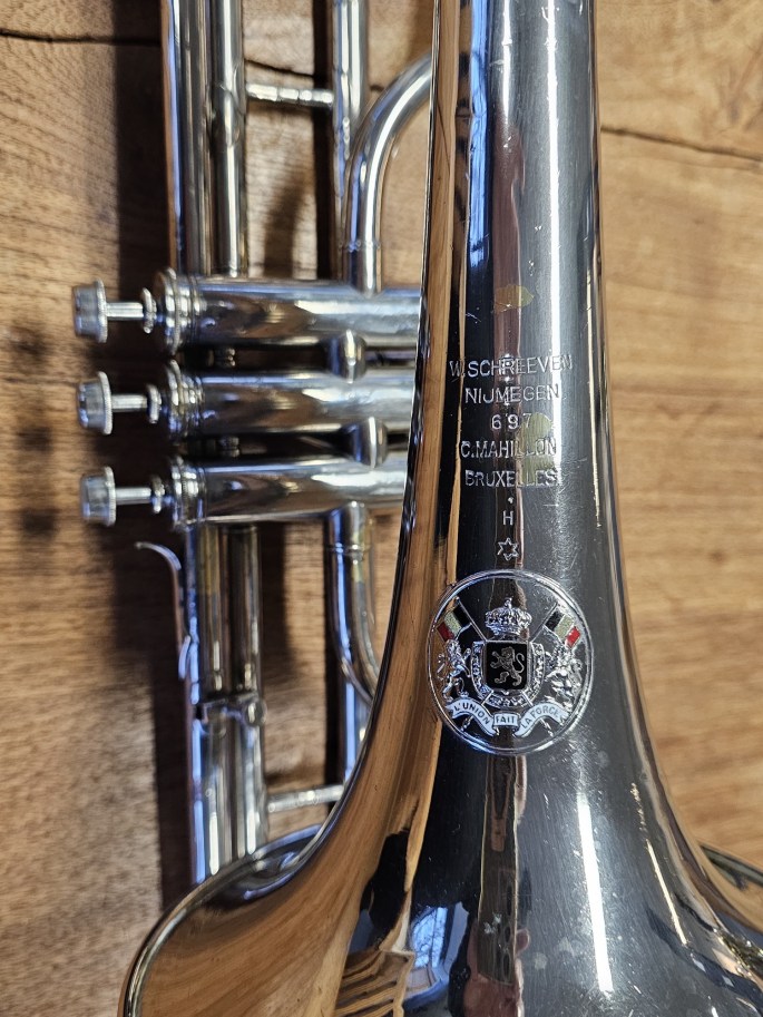 A beautifully crafted Bb valve trombone made by C. Mahillon, a respected Belgian instrument maker. This instrument has been thoroughly inspected and is in good condition, offering a clear and resonant tone.