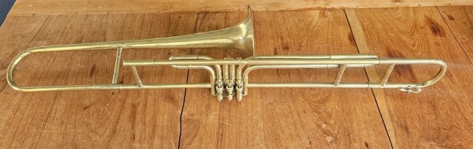 A very nice trombone with a beautiful sound. Valves work great and the tuning slides are moveable.