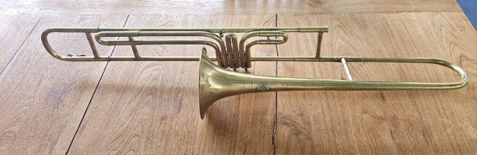 Een erg mooie trombone met een prachtige klank. De ventielen werken goed en de stemschuiven zijn beweegbaar.