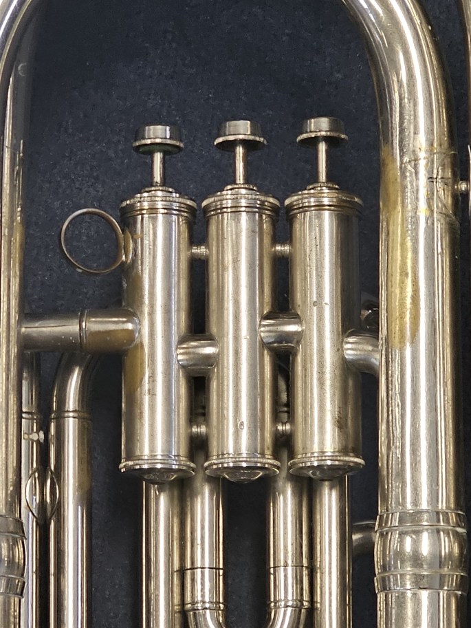 Een fraai gebouwde bastuba in Bes van C. Mahillon, een gerenommeerde historische Belgische bouwer die bekendstaat om zijn hoogwaardige koperblaasinstrumenten. Het instrument is geheel nagekeken en verkeert in een goede, goed bespeelbare conditie.