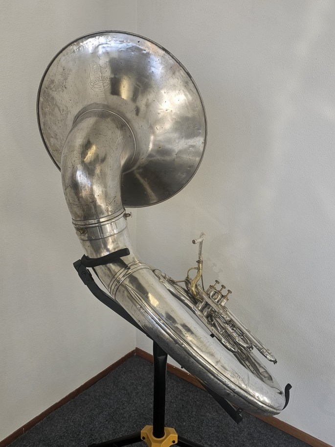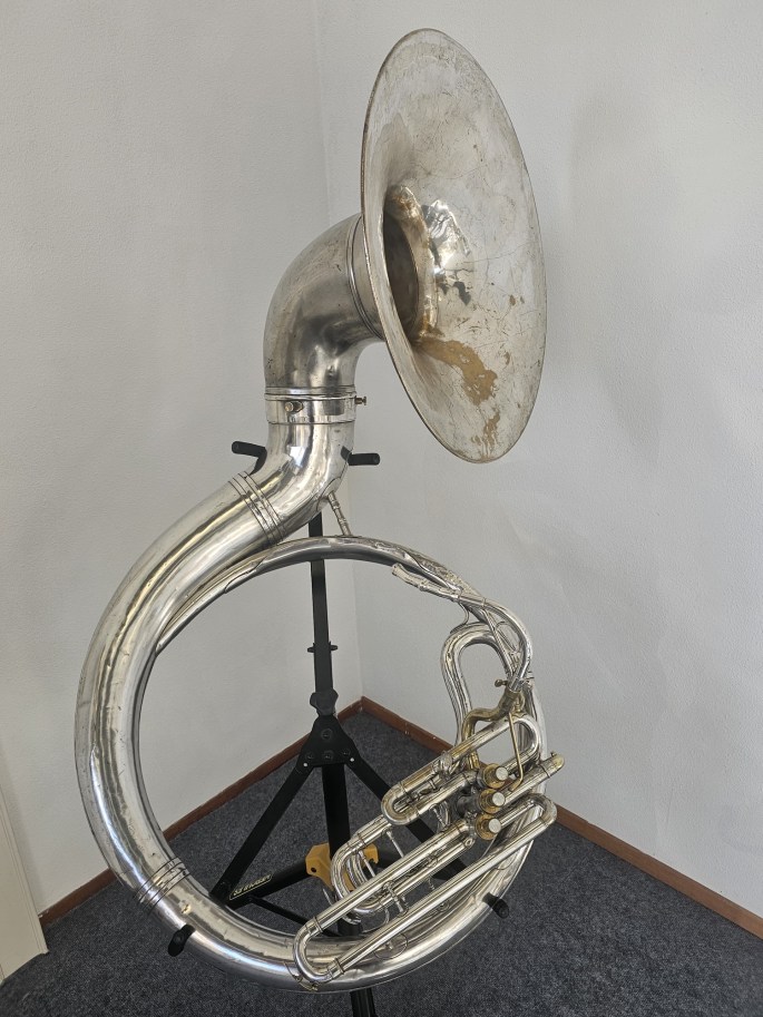 De sousafoon is volledig nagekeken en verkeert in goede, speelklaar staat. De ventielen lopen soepel en het instrument spreekt goed aan in alle registers.