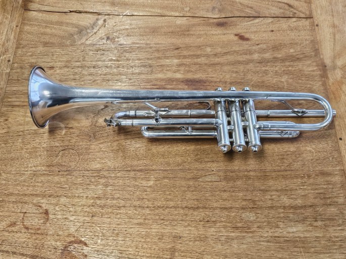 This Bb trumpet, made by Cavalier—a sub-brand of Pan American, part of the Conn family—was produced between 1933 and 1948. The instrument has been fully inspected and is in good, playable condition, offering a surprisingly warm and centred tone for its age.