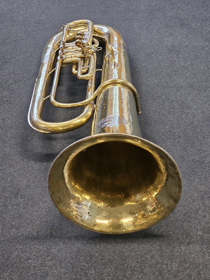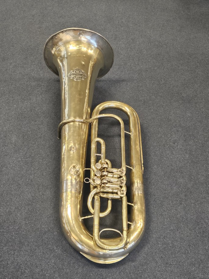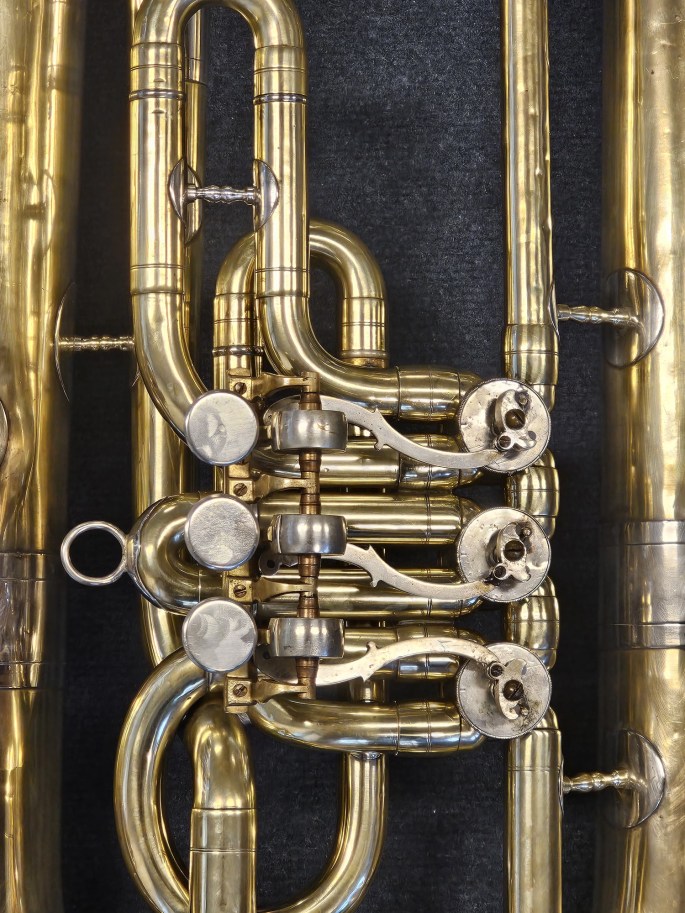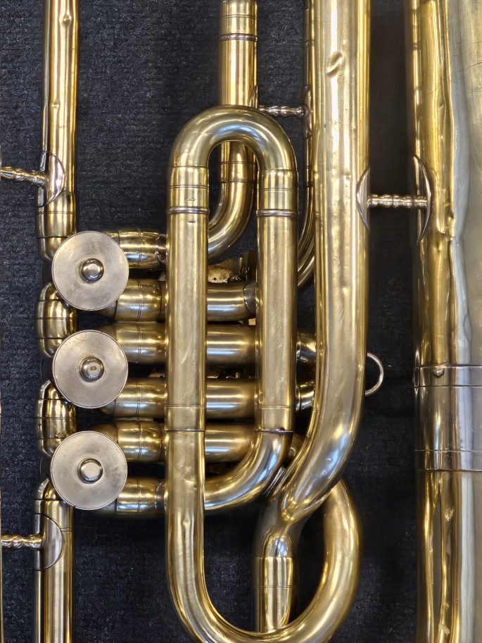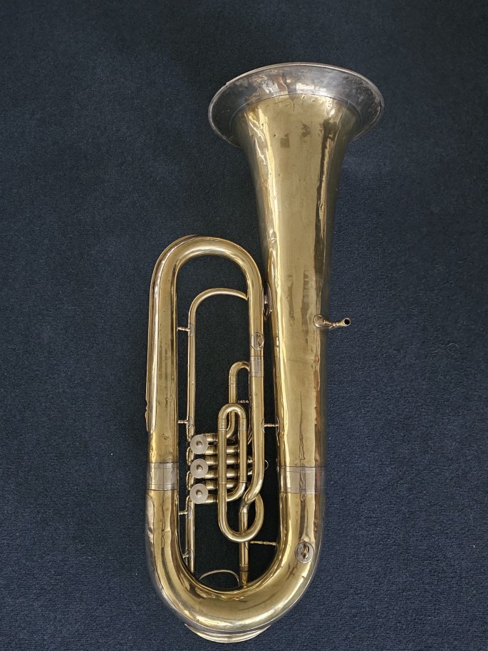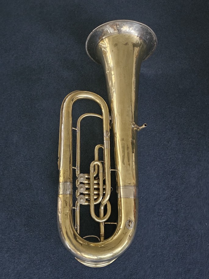 Deze tuba heeft een rijke, karaktervolle klank en vormt een bijzonder voorbeeld van vroeg Zwitsers koperblaasvakmanschap. Ideaal voor verzamelaars en musici die historische instrumenten waarderen.