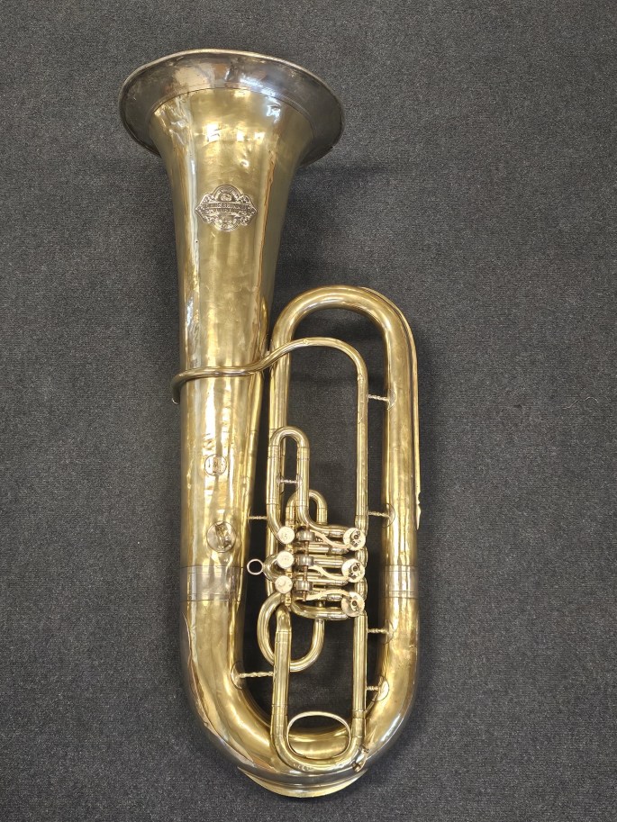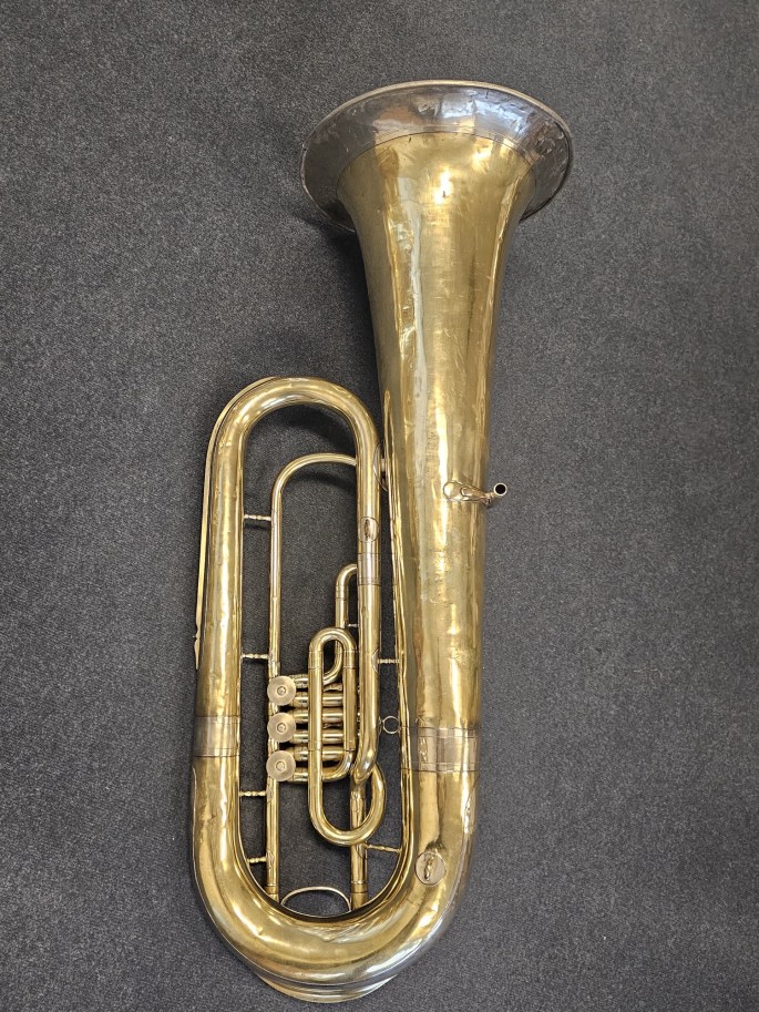 This tuba offers a rich, characterful sound and represents an important piece of early Swiss brass instrument making. Perfect for collectors and musicians who appreciate vintage instruments with history.