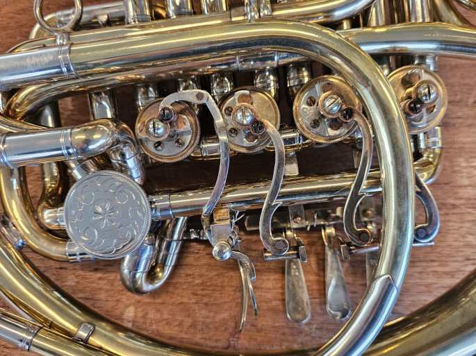 Das Modell 104 ist bekannt für seinen warmen, vollen Klang und seine präzise Handwerkskunst. Ein echtes Meisterwerk deutscher Ingenieurskunst, das sowohl für professionelle Musiker als auch für Sammler geeignet ist. Gebr. Alexander Mainz, seit 1782 ein weltweit führender Name im Bau von Blechblasinstrumenten, steht für Präzision und Qualität, die Generationen überdauern.