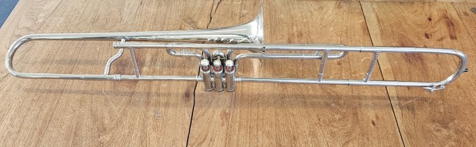 A fine Bb valve trombone, made by the Gebroeders de Prins from Antwerp. This instrument has been thoroughly inspected and is in good condition, offering a beautiful, resonant tone.