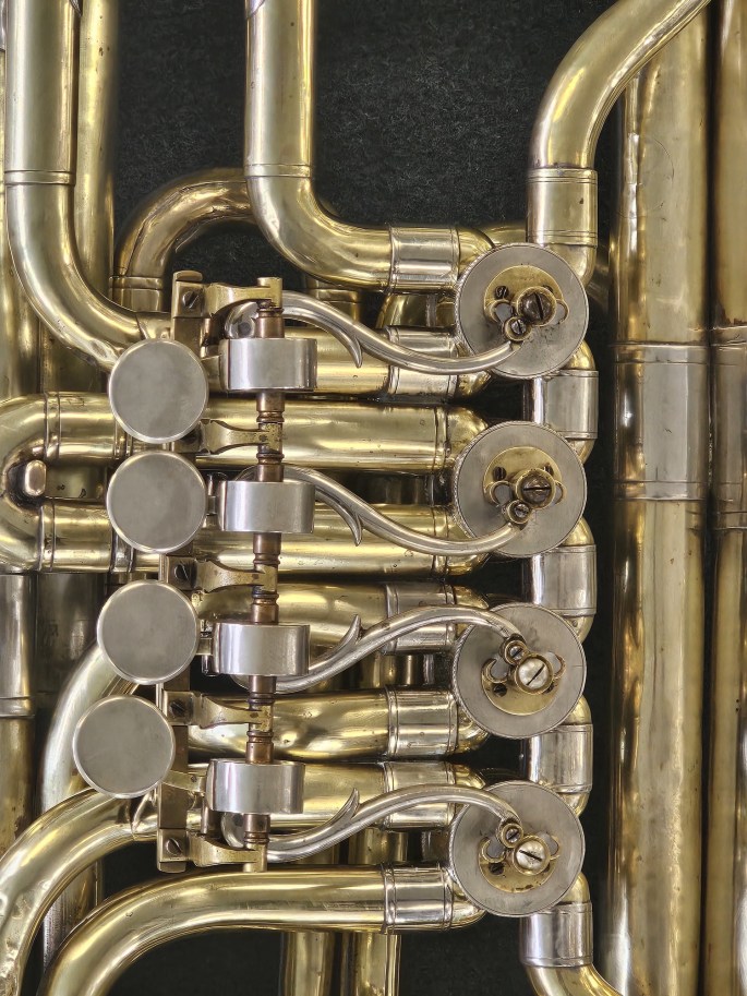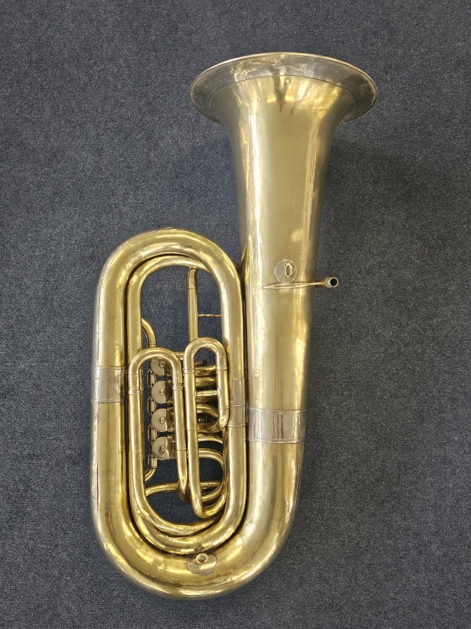 The tuba has been fully checked, serviced, and is in ready-to-play condition. It is ideal for players looking for a compact, responsive instrument with a distinctive valve setup.