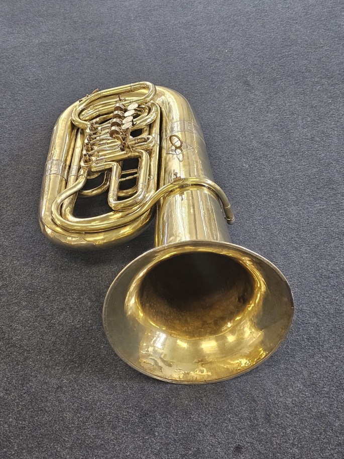 De tuba is volledig nagekeken, onderhouden en speelklaar.