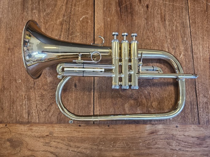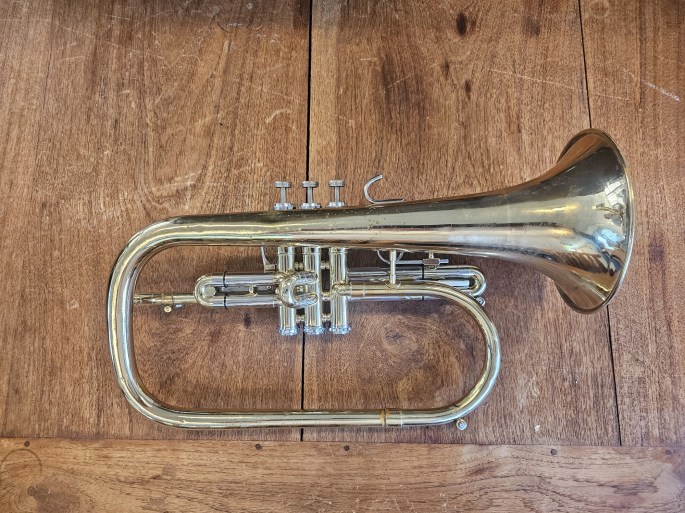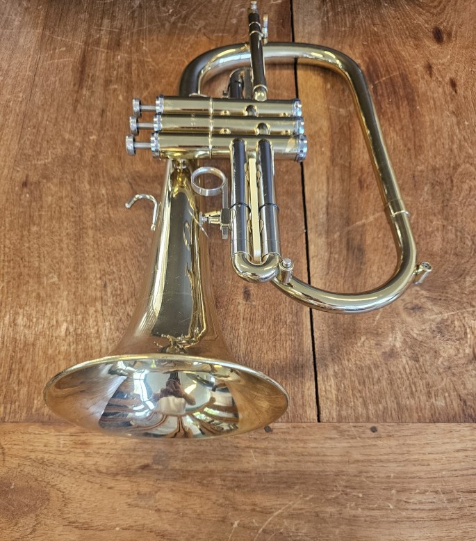 A beautiful Bb flugelhorn, model Capri, made by Getzen between 1980-1985 (according to the serial number). This instrument has been thoroughly inspected and is in good condition, offering a warm and full sound.