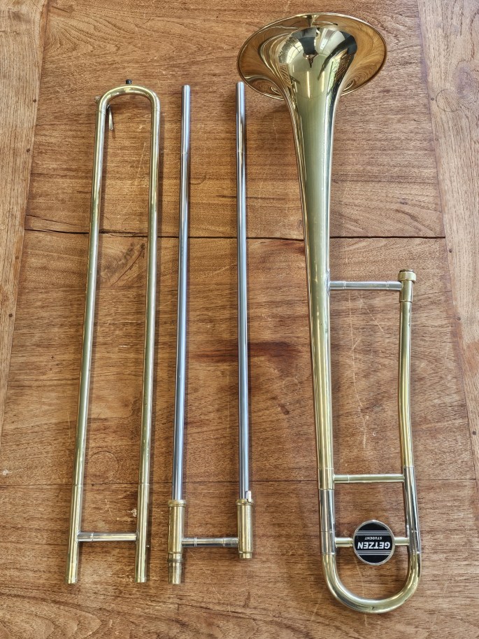 A reliable and well-playing Getzen Student trombone, ideal for beginning and intermediate players. This instrument has been thoroughly inspected and is in good condition, offering a clear, warm tone.