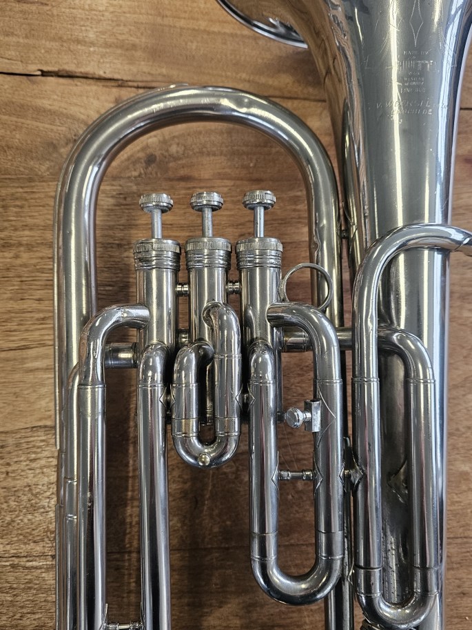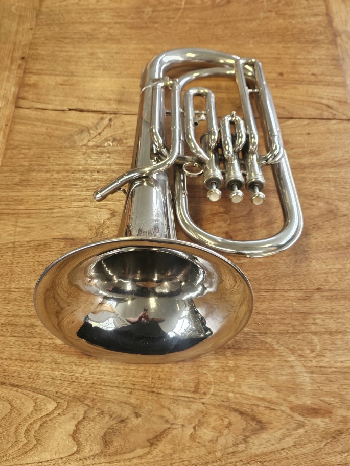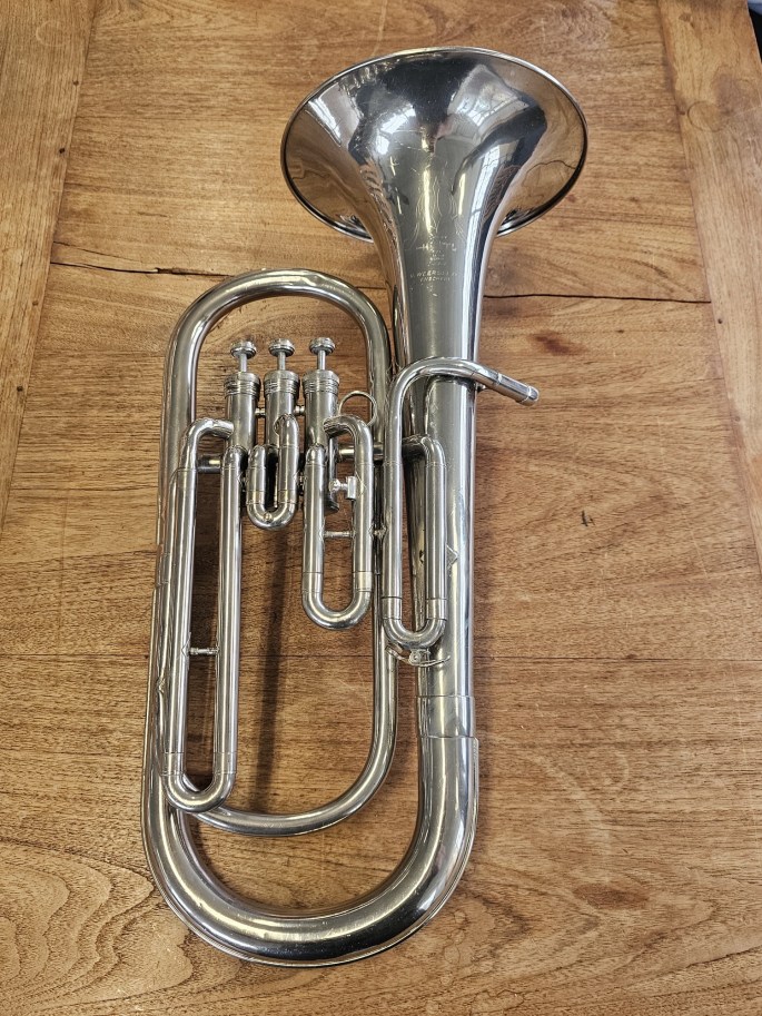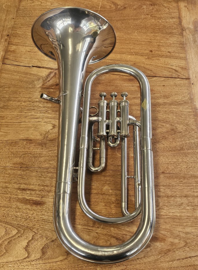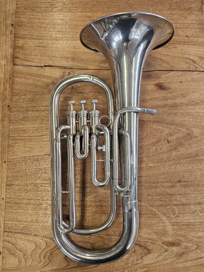 Ein hochwertiges B-Bariton aus der Hüttl Line 800 Serie, bekannt für solide deutsche Handwerkskunst und zuverlässige Spieleigenschaften. Das Instrument wurde vollständig überprüft und ist spielbereit.