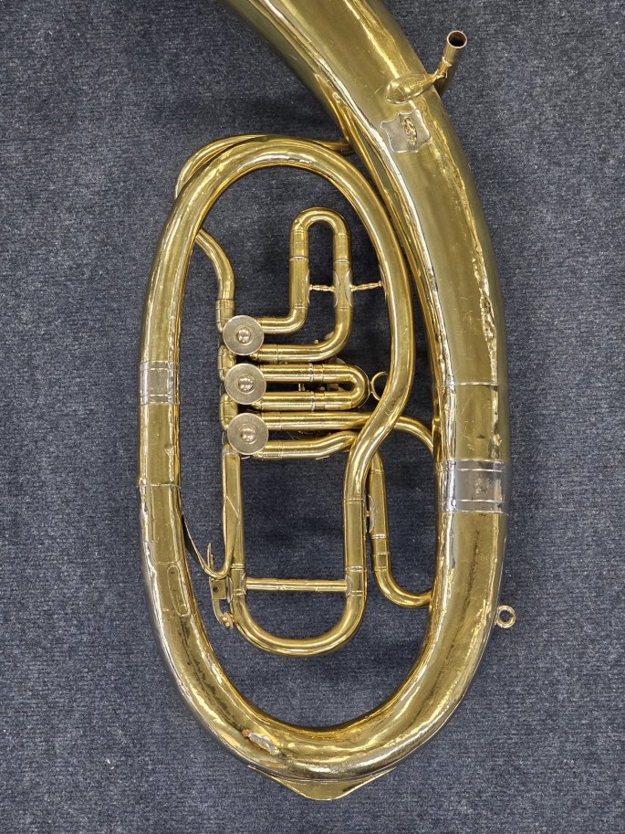 This oval baritone is suitable for players looking for a characterful instrument with a good tone, and who are aware of its technical condition and limitations.