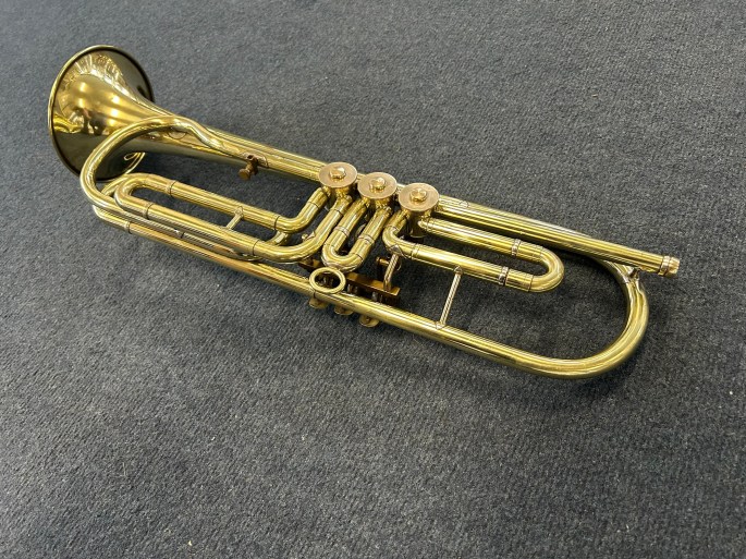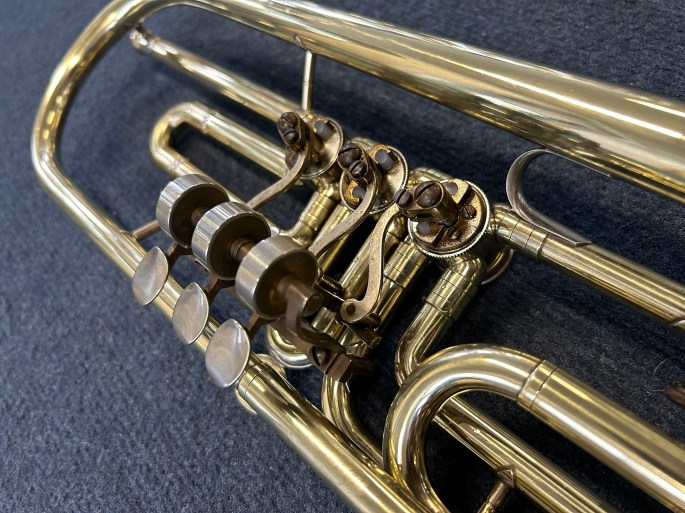 Das Instrument wurde komplett überholt und ist in gutem Zustand. Alle Ventile und Züge sind leicht beweglich und die Kompression ist gut.