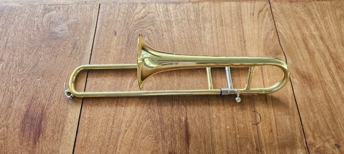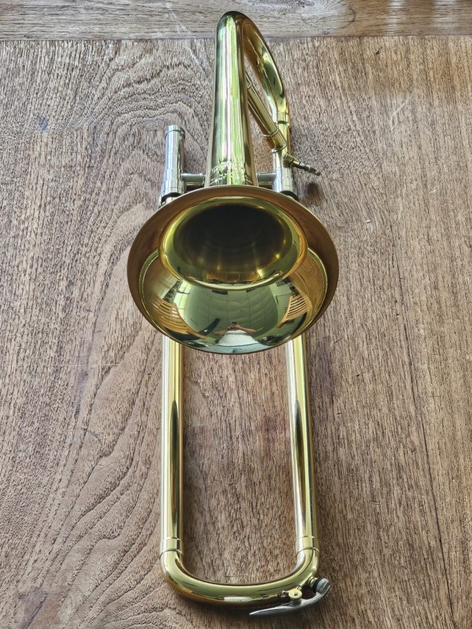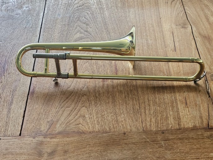 Deze degelijke schuiftrompet (ook bekend als sopraantrombone) van Jupiter is geheel nagekeken en in goede conditie.
