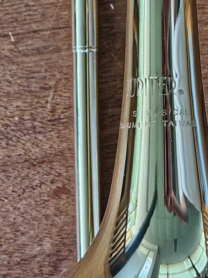 Diese gut gebaute Zugtrompete (auch bekannt als Sopranposaune) von Jupiter wurde komplett überprüft und ist in gutem Zustand.