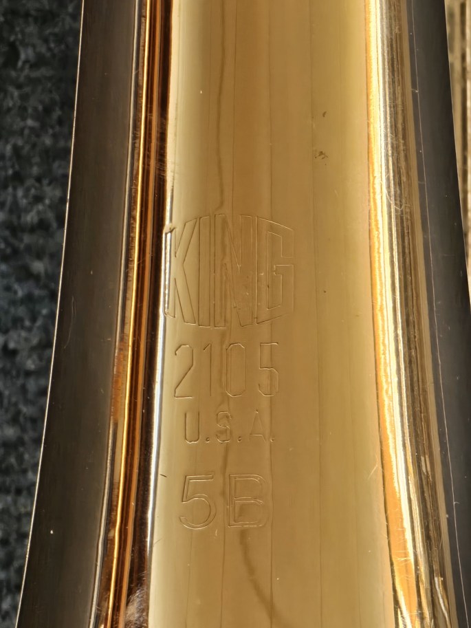 This King 2105 5B tenor trombone in Bb/F is a well-known and respected model, valued for its reliable construction and characteristic King sound. The instrument has been fully serviced and is in good playing condition.