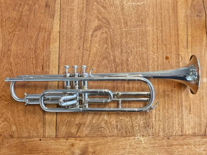 This high-quality Eb bass trumpet, made by the esteemed Kühnl & Hoyer brand, offers exceptional versatility. It can be played with both an alto horn mouthpiece and a trumpet mouthpiece, allowing you to explore different sound qualities and musical styles. The instrument has been thoroughly checked and is in excellent playing condition. It comes with a case for easy storage and transportation. Whether you’re a professional musician or a dedicated student, this bass trumpet is a fantastic addition to any brass collection.